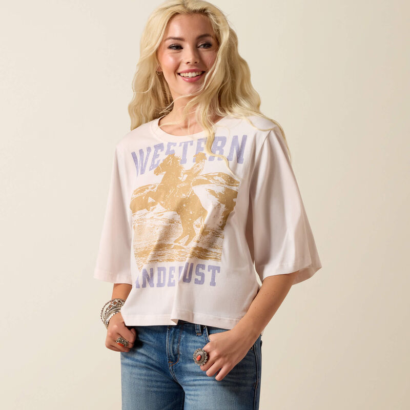 The cropped tee just got a little edgier. With kimono-inspired sleeves, a bold vintage graphic, and a boxier fit, it’s a standout for casual summer style.